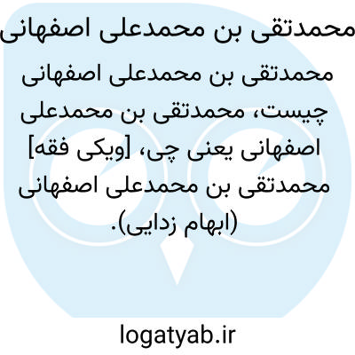 [ویکی فقه] محمدتقی بن محمدعلی اصفهانی (ابهام زدایی). محمدتقی بن محمدعلی اصفهانی ممکن است اشاره به اشخاص و شخصیت های ذیل باشد: • محمدتقی بن محمدعلی اردستانی کاشانی اصفهانی، عالم فاضل، از دانشوران قرن سیزدهم هجری در اصفهان• محمدتقی بن محمدعلی خوشنویس اصفهانی، از خوشنویسان قرن سیزدهم هجری در اصفهان• محمدتقی بن محمدعلی صدیقین اصفهانی، عالم فاضل معاصر در اصفهان• محمدتقی بن محمدعلی نوری اصفهانی، عالم فاضل، از علمای اصفهان در اواخر دوره قاجاریه• محمدتقی بن محمدعلی هرندی اصفهانی، عالم فاضل زاهد متقی در اصفهان• محمدتقی خان بن محمدعلی صدری اصفهانی، از فرهنگیان قدیمی اصفهان