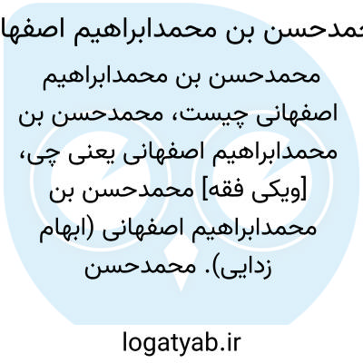 [ویکی فقه] محمدحسن بن محمدابراهیم اصفهانی (ابهام زدایی). محمدحسن بن محمدابراهیم اصفهانی ممکن است اشاره به اشخاص و شخصیت های ذیل باشد: • محمدحسن بن محمدابراهیم شیروانی گزی اصفهانی، عالم فاضل محقّق در اصفهان• محمدحسن بن محمدابراهیم یزدی اصفهانی، فاضل جلیل و ادیب خطیب، از فضلاء قرن سیزدهم هجری در اصفهان• محمدحسن سکوت علی شاه بن محمدابراهیم دهکردی اصفهانی، از عرفای اواخر دوره قاجاریه