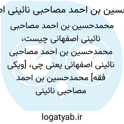 [ویکی فقه] محمدحسین بن احمد مصاحبی نائینی اصفهانی، خوشنویس فاضل قرن سیزدهم هجری اصفهان می باشد.