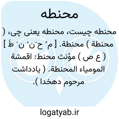 ( محنطة ) محنطة. [ م ُ ح َن ْ ن َ طَ ] ( ع ص ) مؤنث محنط: اقمشة المومیاء المحنطة. ( یادداشت مرحوم دهخدا ). رجوع به محنط شود.