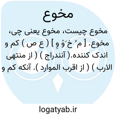 مخوع. [ م ُ خ َوْ وِ ] ( ع ص ) کم و اندک کننده.( آنندراج ) ( از منتهی الارب ) ( از اقرب الموارد ). آنکه کم و اندک می گرداند. ( ناظم الاطباء ). || توجبه که پهلوهای وادی را شکند. ( آنندراج ) ( از منتهی الارب ) ( از اقرب الموارد ). وادی که سیل پهلوهای آن را شکسته باشد. ( ناظم الاطباء ). || اداکننده وام. ( آنندراج ) ( از منتهی الارب ) ( از اقرب الموارد ). اداکننده وام و دین. ( ناظم الاطباء ). و رجوع به تخویع شود.
