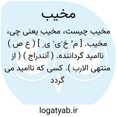 مخیب. [ م ُ خ َی ْ ی ِ ] ( ع ص ) ناامید گرداننده. ( آنندراج ) ( از منتهی الارب ). کسی که ناامید می گردد از دیگری و محروم. ( ناظم الاطباء ). و رجوع به تخییب شود.