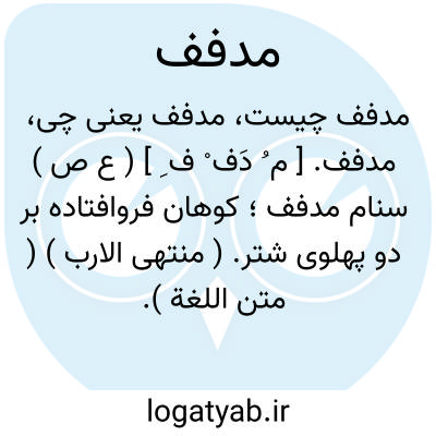 مدفف. [ م ُ دَف ْ ف ِ ] ( ع ص ) سنام مدفف؛ کوهان فروافتاده بر دو پهلوی شتر. ( منتهی الارب ) ( متن اللغة ). || شتاب کننده و تعجیل کننده در کشتن خسته. ( آنندراج ) ( ناظم الاطباء ) ( از متن اللغة ). نعت فاعلی است از تدفیف. رجوع به تدفیف شود. || سازنده دف. ( از متن اللغة ). دایره ساز. دف ساز.