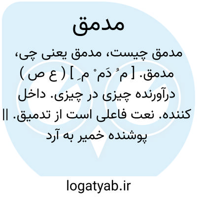 مدمق. [ م ُ دَم ْ م ِ ] ( ع ص ) درآورنده چیزی در چیزی. داخل کننده. نعت فاعلی است از تدمیق. || پوشنده خمیر به آرد تا خمیر به دست نچسبد. ( ناظم الاطباء ) ( از آنندراج ). نعت فاعلی است از تدمیق. رجوع به تدمیق شود.