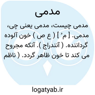 مدمی. [ م ُ ] ( ع ص ) خون آلوده گرداننده. ( آنندراج ). آنکه مجروح می کند تا خون ظاهر گردد. ( ناظم الاطباء ). نعت فاعلی است از ادماء. رجوع به ادماء شود.