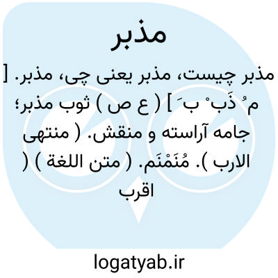 مذبر. [ م ُ ذَب ْ ب َ ] ( ع ص ) ثوب مذبر؛ جامه آراسته و منقش. ( منتهی الارب ). مُنَمْنَم. ( متن اللغة ) ( اقرب الموارد ). جامه نگارین. ( یادداشت مؤلف ).