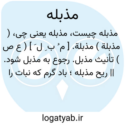 ( مذبلة ) مذبلة. [ م ُ ب ِ ل َ ] ( ع ص ) تأنیث مذبل. رجوع به مذبل شود. || ریح مذبله؛ باد گرم که نبات را پژمرده گرداند. ( منتهی الارب ).