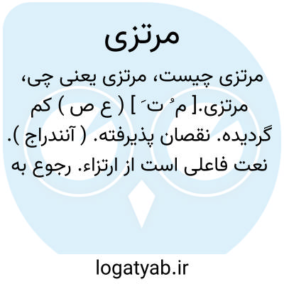 مرتزی.[ م ُ ت َ ] ( ع ص ) کم گردیده. نقصان پذیرفته. ( آنندراج ). نعت فاعلی است از ارتزاء. رجوع به ارتزاء شود.