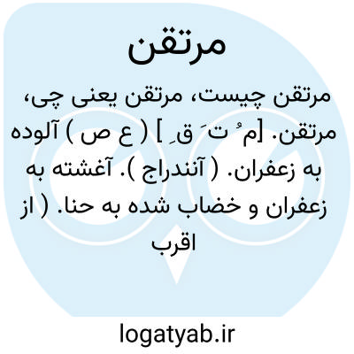 مرتقن. [م ُ ت َ ق ِ ] ( ع ص ) آلوده به زعفران. ( آنندراج ). آغشته به زعفران و خضاب شده به حنا. ( از اقرب الموارد ). متضمخ. مختضب. ( از متن اللغة ). رجوع به ارتقان شود.