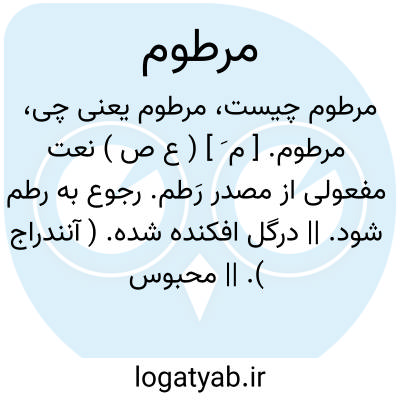مرطوم. [ م َ ] ( ع ص ) نعت مفعولی از مصدر رَطم. رجوع به رطم شود. || درگل افکنده شده. ( آنندراج ). || محبوس شده و در زندان افتاده. ( ناظم الاطباء ). || بعیر مرطوم، شتر بازداشته شده. ( از منتهی الارب ).