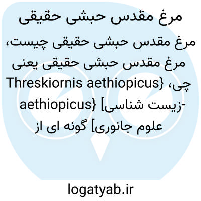 {Threskiornis aethiopicus aethiopicus} [زیست شناسی- علوم جانوری] گونه ای از تیرۀ مرغ مقدسیان و راستۀ لک لک سانان که رنگ آن غالباً سفید و نوک بال های اولیه و ثانویۀ آن سیاه است؛ سر و گردن لخت با پوست سیاه دارد و پاهای آن سیاه است و ضخیم ترین منقار را در این جنس دارد