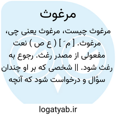 مرغوث. [ م َ ] ( ع ص ) نعت مفعولی از مصدر رغث. رجوع به رغث شود. || شخصی که بر او چندان سؤال و درخواست شود که آنچه پیش او بود سپری شود و به اتمام رسد.( از منتهی الارب ) ( از اقرب الموارد ). || آن که رگهای پستان وی دردناک شده باشد. ( ناظم الاطباء ).