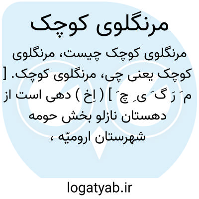 مرنگلوی کوچک. [ م َ رَ گ َ ی ِ چ َ ] ( اِخ ) دهی است از دهستان نازلو بخش حومه شهرستان ارومیّه، واقع در 9هزارگزی شمال شرقی ارومیّه به سلماس. آب آن از قنات و چشمه و محصول آن غلات و چغندر و حبوب و راه آن ارابه رو است. ( از فرهنگ جغرافیائی ایران ج 4 ).