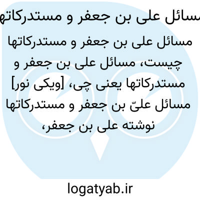 [ویکی نور] مسائل علیّ بن جعفر و مستدرکاتها. مولف این کتاب نوشته علی بن جعفر، فرزند امام جعفر صادق علیه السلام است که شامل مجموعۀ سؤالاتی است که علی بن جعفر از برادر بزرگوار خویش امام موسی کاظم علیه السلام نموده است همراه با جوابهای آن حضرت.