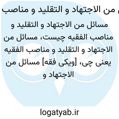 [ویکی فقه] مسائل من الاجتهاد و التقلید و مناصب الفقیه (کتاب). «مسائل من الاجتهاد و التقلید و مناصب الفقیه»، اثرآیت الله حسین نوری همدانی، در زمینه بررسی دو مسئله اجتهاد و تقلید از دیدگاه علم اصول می باشد که در پایان آن، مباحثی پیرامون ولایت فقیه و تقلید از میت نیز، مطرح شده است. کتاب، به زبان عربی و در سال ۱۴۱۵ ق، تدوین شده است.