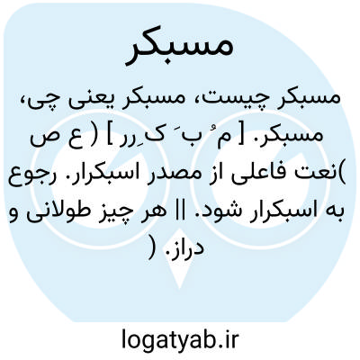 مسبکر. [ م ُ ب َ ک ِرر ] ( ع ص )نعت فاعلی از مصدر اسبکرار. رجوع به اسبکرار شود. || هر چیز طولانی و دراز. ( اقرب الموارد ). || جوان تمام بالا و به اعتدال رسیده. || موی فروهشته. ( منتهی الارب ) ( اقرب الموارد ).