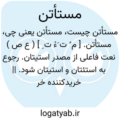 مستأتن. [ م ُ ت َءْ ت ِ ] ( ع ص ) نعت فاعلی از مصدر استیتان. رجوع به استئتان و استیتان شود. || خریدکننده خر ماده و برگزیننده آن برای خویش. ( منتهی الارب ) ( اقرب الموارد ).