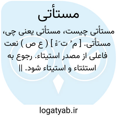 مستأتی. [ م ُ ت َءْ ] ( ع ص ) نعت فاعلی از مصدر استیتاء. رجوع به استئتاء و استیتاء شود. || بطی ٔآینده. ( منتهی الارب ). با تأخیر آینده نزد کسی. ( اقرب الموارد ). || آمدن کسی را خواهنده. ( منتهی الارب ) ( اقرب الموارد ).