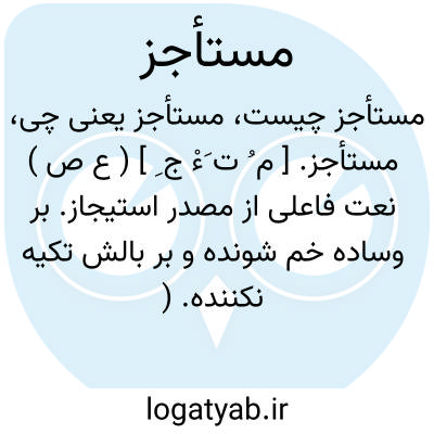 مستأجز. [ م ُ ت َءْ ج ِ ] ( ع ص ) نعت فاعلی از مصدر استیجاز. بر وساده خم شونده و بر بالش تکیه نکننده. ( منتهی الارب ). کسی که بر بالش خم شود و بر آن تکیه نکند، و گویند کسی که از وساده دور شود. ( اقرب الموارد ). رجوع به استئجاز و استیجاز شود.