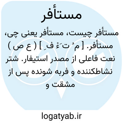 مستأفر. [ م ُ ت َءْ ف ِ ] ( ع ص ) نعت فاعلی از مصدر استیفار. شتر نشاطکننده و فربه شونده پس از مشقت و لاغری. ( منتهی الارب ). رجوع به استئفار و استیفار شود.