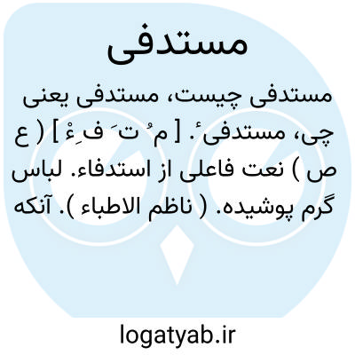 مستدفی ٔ. [ م ُ ت َ ف ِءْ ] ( ع ص ) نعت فاعلی از استدفاء. لباس گرم پوشیده. ( ناظم الاطباء ). آنکه دفاء و جامه گرم پوشد. ( اقرب الموارد ). || گرم کننده خود را بوسیله جامه یا آتش و غیره. ( اقرب الموارد ).و رجوع به استدفاء شود. || در عبارت ذیل از جهانگشای جوینی ( چ طهران ص 4 ) می نماید که معنی کلمه توسعی دارد. مثلاً گرمی خواهنده در آغوش کسی و نظایرآن: هر مزوری وزیری و هر مدبری دبیری و هر مستدفئی مستوفیی. ( جهانگشای جوینی چ تهران ص 4 ).