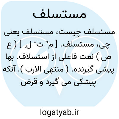 مستسلف. [ م ُ ت َ ل ِ ] ( ع ص ) نعت فاعلی از استسلاف. بها پیشی گیرنده. ( منتهی الارب ). آنکه پیشکی می گیرد و قرض می خواهد. ( ناظم الاطباء ). قرض گیرنده و وام گیرنده. ( اقرب الموارد ). || آنکه زن برادر خود را که مرده باشد می گیرد. ( ناظم الاطباء ). رجوع به استسلاف شود.