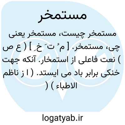 مستمخر. [ م ُ ت َ خ ِ ] ( ع ص ) نعت فاعلی از استمخار. آنکه جهت خنکی برابر باد می ایستد. ( ا ز ناظم الاطباء ) ( از اقرب الموارد ). رجوع به استمخار شود.