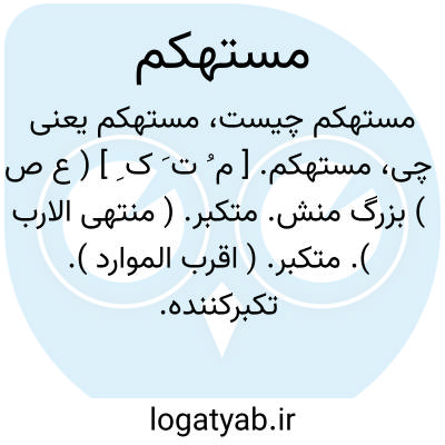 مستهکم. [ م ُ ت َ ک ِ ] ( ع ص ) بزرگ منش. متکبر. ( منتهی الارب ). متکبر. ( اقرب الموارد ). تکبرکننده. ( آنندراج ). رجوع به استهکام شود.