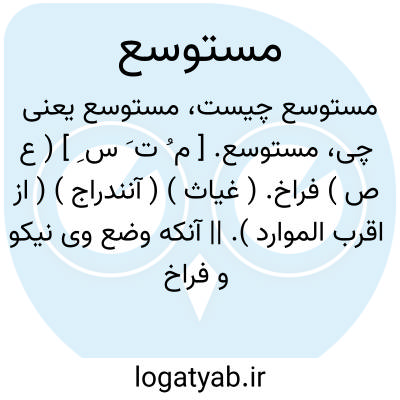 مستوسع. [ م ُ ت َ س ِ ] ( ع ص ) فراخ. ( غیاث ) ( آنندراج ) ( از اقرب الموارد ). || آنکه وضع وی نیکو و فراخ شده باشد. || وسیع و فراخ یابنده چیزی را. || وسیع و فراخ خواهنده چیزی را. ( از اقرب الموارد ). و رجوع به استیساع شود.