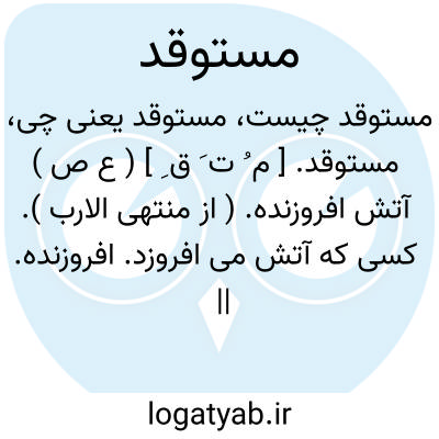 مستوقد. [ م ُ ت َ ق َ ] ( ع ص ) نعت مفعولی از استیقاد. رجوع به استیقاد شود. || ( اِ ) جا و موضع آتش. ( از اقرب الموارد ).