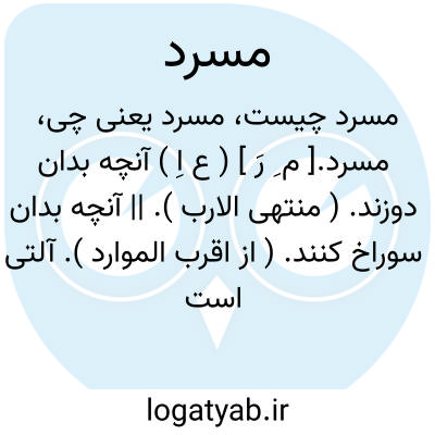 مسرد.[ م ِ رَ ] ( ع اِ ) آنچه بدان دوزند. ( منتهی الارب ). || آنچه بدان سوراخ کنند. ( از اقرب الموارد ). آلتی است آهنی که بدان در چرم سوراخ کنند. ( غیاث ). درفش. ( نصاب ). سرید. بیز ( در تداول مردم قزوین ). || لسان. زبان. || نعل مخصوف و کفش که با درفش سوراخ شده باشد. ( از اقرب الموارد ).