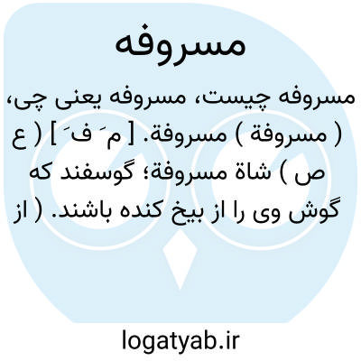 ( مسروفة ) مسروفة. [ م َ ف َ ] ( ع ص ) شاة مسروفة؛ گوسفند که گوش وی را از بیخ کنده باشند. ( از اقرب الموارد ). رجوع به مسروف و سرف شود.