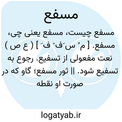 مسفع. [ م ُ س َف ْ ف َ ] ( ع ص ) نعت مفعولی از تسفیع. رجوع به تسفیع شود. || ثور مسفع؛ گاو که در صورت او نقطه های سیاه باشد. ( از ذیل اقرب الموارد ).