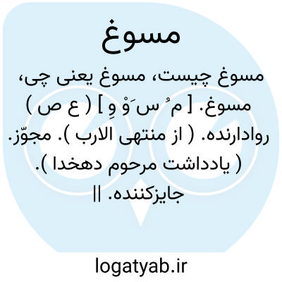مسوغ. [ م ُ س َوْ وَ ] ( ع ص ) مسوع. جایزشده. روا. و رجوع به مسوع شود. || گوارا شده. گواریده.