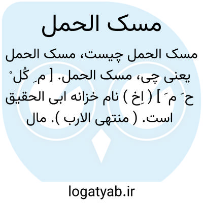 مسک الحمل. [ م ِ کُل ْ ح َ م َ ] ( اِخ ) نام خزانه ابی الحقیق است. ( منتهی الارب ). مال ابوالحقیق را کنز می نامیدند و لقب مسک الحمل داده بودند، چه آن عبارت بود از زینت آلات و جواهراتی که در پوست بره پیچیده بود و به روی آن پوست گاو نر و به روی آن پوست شتر و قیمت آن را ده هزار دینار تخمین میزدند. ( از الجماهر بیرونی ص 157 ). و رجوع به همین مأخذ شود.