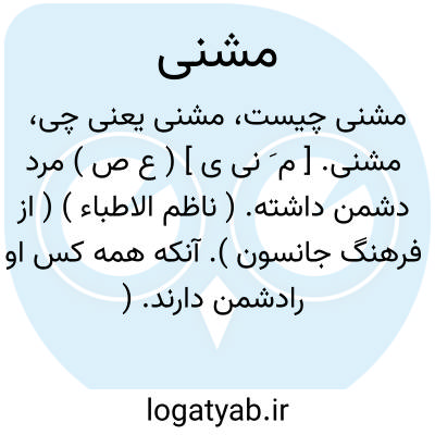 مشنی. [ م َ نی ی ] ( ع ص ) مرد دشمن داشته. ( ناظم الاطباء ) ( از فرهنگ جانسون ). آنکه همه کس او رادشمن دارند. ( مهذب الاسماء ). و رجوع به مشناء شود.