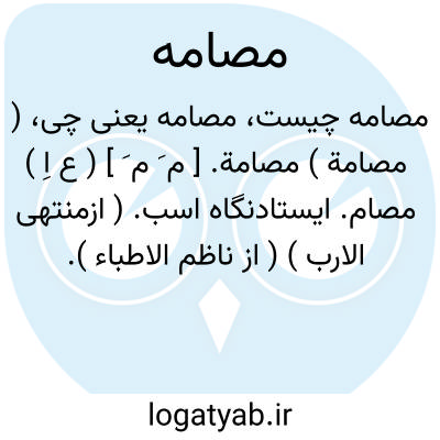 ( مصامة ) مصامة. [ م َ م َ ] ( ع اِ ) مصام. ایستادنگاه اسب. ( ازمنتهی الارب ) ( از ناظم الاطباء ). رجوع به مصام شود.