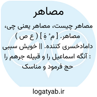 مصاهر. [ م ُ هَِ ] ( ع ص ) دامادخسری کننده. || خویش سببی: آنگه اسماعیل را و قبیله جرهم را حج فرمود و مناسک بیاموخت و ایشان مصاهران اسماعیل بودند. ( تفسیر ابوالفتوح رازی ). و رجوع به مصاهرت و مصاهرة و مصاهره شود.