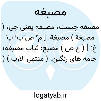 ( مصبغة ) مصبغة. [ م ُ ص َب ْ ب َ غ َ ] ( ع ص ) مصبغ: ثیاب مصبغة؛ جامه های رنگین. ( منتهی الارب ) ( آنندراج ) ( ناظم الاطباء ). و رجوع به مصبغ شود.