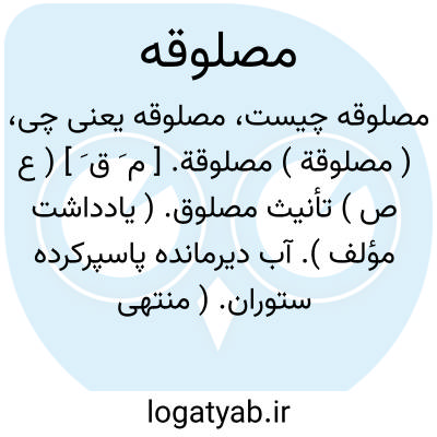( مصلوقة ) مصلوقة. [ م َ ق َ ] ( ع ص ) تأنیث مصلوق. ( یادداشت مؤلف ). آب دیرمانده پاسپرکرده ستوران. ( منتهی الارب ). صلاقة. و رجوع به مصلوق شود.