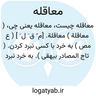 ( معاقلة ) معاقلة. [م ُ ق َ ل َ ] ( ع مص ) به خرد با کسی نبرد کردن. ( تاج المصادر بیهقی ). به خرد نبرد کردن. ( منتهی الارب ) ( آنندراج ): عاقله معاقلة فعقله؛ نبرد کرد او را در خرد پس اعقل و با خردتر از او بود. ( ناظم الاطباء ) ( از اقرب الموارد ). || مساوات کردن، و منه الحدیث: المراءة تعاقل الرجل الی ثلث دیتها؛ ای تساویه یعنی زخم موضحه مرد و موضحه زن در کم از ثلث برابر است پس هرگاه دیت جنایت زن به ثلث رسد یا زاید شود دیت آن نصف دیت مرد گردد... ( منتهی الارب ) ( آنندراج ) ( از اقرب الموارد ). مساوات کردن، الحدیث: المراءة تعاقل الرجل الی ثلث دیتها؛ ای تساویه. ( ناظم الاطباء ).