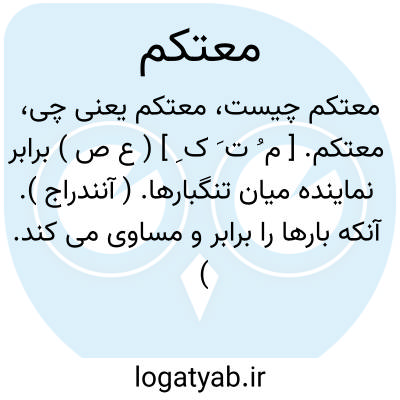 معتکم. [ م ُ ت َ ک ِ ] ( ع ص ) برابر نماینده میان تنگبارها. ( آنندراج ). آنکه بارها را برابر و مساوی می کند. ( ناظم الاطباء ) ( از اقرب الموارد ). || چیز بر هم نشسته. ( ناظم الاطباء ) ( از منتهی الارب ) ( از اقرب الموارد ). و رجوع به اعتکام شود.