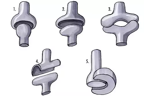 دو استخوان مجاور در این مفاصل مانند زین اسب در هم فرورفته اند و و به صورت محدب و مقعر بر روی یکدیگر قرار می گیرند، مانند اولین استخوان کف دست با استخوان ذوزنقه ای در مچ.
