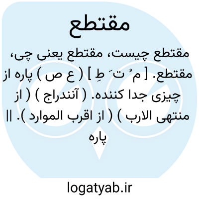 مقتطع. [ م ُ ت َ طِ ] ( ع ص ) پاره از چیزی جدا کننده. ( آنندراج ) ( از منتهی الارب ) ( از اقرب الموارد ). || پاره ای از مال کسی گیرنده. ( آنندراج ) ( از منتهی الارب ) ( از اقرب الموارد ). و رجوع به اقتطاع شود.