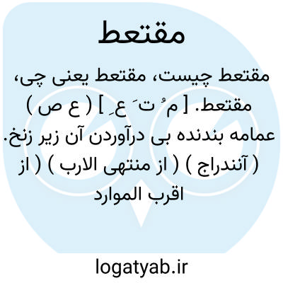 مقتعط. [ م ُ ت َ ع ِ ] ( ع ص ) عمامه بندنده بی درآوردن آن زیر زنخ. ( آنندراج ) ( از منتهی الارب ) ( از اقرب الموارد ). و رجوع به اقتعاط شود.