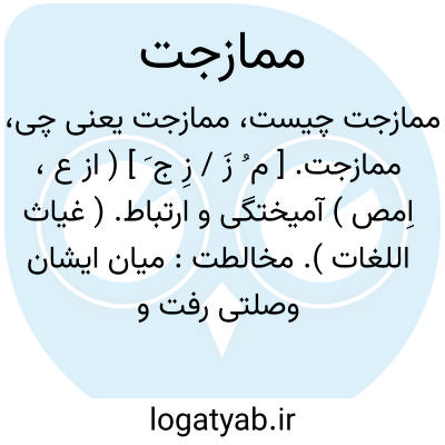 (مُ زَ جَ یا جِ ) [ ع. ممازجة ] ۱ - (مص ل. ) به هم آمیختن. ۲ - (اِمص. ) آمیزش، مخالطت.