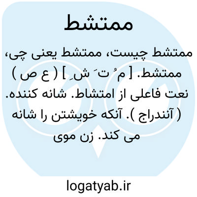 ممتشط. [ م ُ ت َ ش ِ ] ( ع ص ) نعت فاعلی از امتشاط. شانه کننده. ( آنندراج ). آنکه خویشتن را شانه می کند. زن موی فروکننده خویشتن را. || شانه کرده شده. ( ناظم الاطباء ). رجوع به امتشاط شود.