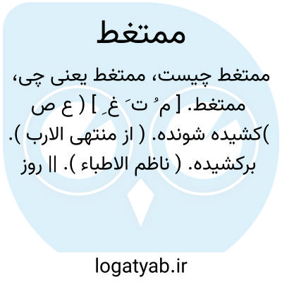 ممتغط. [ م ُ ت َ غ ِ ] ( ع ص )کشیده شونده. ( از منتهی الارب ). برکشیده. ( ناظم الاطباء ). || روز بلند. ( آنندراج ). روز بلند برآمده. || آنکه شمشیر برمی کشد. ( ناظم الاطباء ). شمشیر برکشنده. ( آنندراج ). رجوع به امتغاط شود.