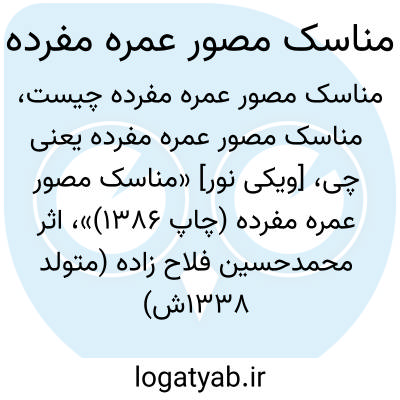 [ویکی نور] «مناسک مصور عمره مفرده (چاپ 1386)»، اثر محمدحسین فلاح زاده (متولد 1338ش) است که در آن، احکام و مناسک این عمل عبادی را جمع و تنظیم و همراه با تصاویر، نقشه ها و نمودارهایی منتشر کرده است.