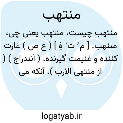 منتهب. [ م ُ ت َ هَِ ] ( ع ص ) غارت کننده و غنیمت گیرنده. ( آنندراج ) ( از منتهی الارب ). آنکه می رباید و غارت می کند و به یغما می برد. ( ناظم الاطباء ) ( از اقرب الموارد ). || اسب چیره در رفتار. ( ناظم الاطباء ) ( از منتهی الارب ) ( از اقرب الموارد ). رجوع به انتهاب شود.